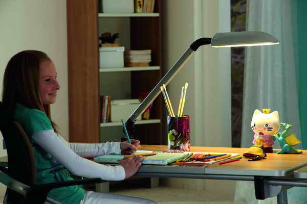 Лампа Swing втілює всі можливі вимоги до дитячої настільної лампи. Вирішення проблем організації робочого місця Вашого школяра має першорядне значення, тому що школярі, особливо школярі молодших класів, досить багато часу проводять на своєму робочому місці. Адже вони не лише готують уроки, а й заповнюють своє дозвілля малюванням, розфарбовуванням та іншими розвагами. Лампа Swing оснащена енергозберігаючою люмінесцентною лампою 11Вт - аналог потужності лампи розжарювання 75Вт, повністю і рівномірно висвітлює стільницю парти, що ідеально для робочої зони. Варто відзначити так само, що денне світло, що випромінюється лампою Swing, максимально наближене до сонячного, що дозволить у свою чергу не напружувати зір Вашого учня під час занять. Завдяки спеціальному заломлюючому склу лампа Swing випромінює рівномірне світло без відблисків і мерехтінь, що зберігає очі від стомлення та напруги. При тривалій роботі нагрівається до теплоти Вашої руки, це уможливлює школяру абсолютно безпечно братися за лампу рукою для переміщення її в інше положення. Лампа має сучасний дизайн, легко регулюється завдяки рухливим шарнірам, плавно змінює кут нахилу і водночас міцно та безпечно кріпиться на стільниці. Також варто врахувати, що енергозберігаючі лампи зменшують споживання електроенергії, при цьому і зменшується навантаження на мережу, що згодом зменшує ризик різних перебоїв, коротких замикань. Враховуючи все перераховане вище - лампа від німецького виробника компанії PAIDI, модель Swing - НАЙКРАЩИЙ варіант з усіх хороших ... Висока якість, максимальна економія, безпека і звичайно ж головне - здорові очі Вашого учня - ось що пропонує компанія PAIDI.