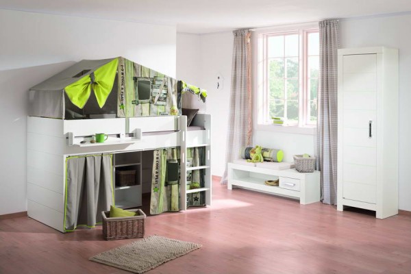 Корпусні меблі фабрики PAIDI трансформуються за Вашим бажанням та бажанням Вашої дитини, - ліжко FIONA може бути одноярусним або двоярусним зі сходами для двох дітей. Малюки люблять залазити вгору сходами у свій власний будиночок, де вони почуваються захищеними. У конструкції ліжка також може бути ігрова зона на першому або другому поверсі з бавовняним балдахіном та в ексклюзивному кольоровому принті, гірки, баскетбольні кільця, намети-магазини – все для всебічного розвитку здібностей та таланту Вашої дитини. Декор ліжок розроблений дизайнерами німецької фабрики PAIDI є ексклюзивним. Конструкція ліжок FIONA забезпечена металевим стрижнем усередині несучих вертикальних опор, що говорить про безпеку конструкції та дотримання стандартів європейської якості.