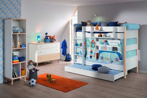 Ліжко Ylvie від німецького заводу PAIDI завдяки своїй ергономічності може бути одноярусним або двоярусним з одним спальним місцем та ігровою (робочою) зоною або двома спальними місцями для двох дітей. Якісний сон - дуже важливий для здоров'я Вашої дитини, уві сні дитина відпочиває та росте, завод PAIDI пропонує матраци для дітей та підлітків різного ступеня жорсткості для формування здорової постави дитини. Також під ліжком за бажанням можуть бути встановлені ящики на роликах – додаткові місця для зберігання речей. Конструкція двоярусних ліжок для двох дітей забезпечена металевими стрижнями всередині вертикальних опор, що несуть, для більшої безпеки. Вимоги до дитячих меблів - не тільки витримувати невичерпний потік енергії дитини, а й брати участь у творчості для розвитку Вашої дитини. Ліжко можна укомплектувати бавовняним балдахіном - вибравши принт, що сподобався, наметом-магазином, гіркою, грифельною дошкою для малювання або рішення прикладів, а також дошкою для альпінізму.