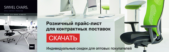 Більшість офісних крісел та стільців мають певний набір опцій – різні види основ (пластик або метал), рухомі та стаціонарні підлокітники, в окремих моделей – підголовник. Листячи прайс-лист у зворотному порядку від сторінки 67 (66, 65, 64 і так далі) Ви зможете подивитися, як зростає вартість офісних крісел в залежності від їх дизайну, наявності тих чи інших опцій. Зверніть увагу на чорні квадратики, в яких намальовано крісло та стрілочки – тут показано та описано функціонал (руху окремих частин або форма деталей) конкретної моделі.