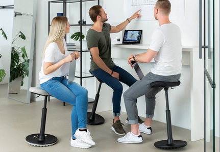 Рух сприяє, серед іншого, процесу концентрації при навчанні та роботі та запобігає стресу. Завдяки технології динамічного сидіння німецької фабрики TOPSTAR, нова колекція Sitness® X забезпечує автоматичне зміцнення спини. Підошва-основа стільця для роботи стоячи Sitness® X Stool 30 розроблена як кросівки. В результаті він забезпечує оптимальну підтримку під час розгойдування вперед і назад, а також забезпечує достатню свободу рухів, щоб стимулювати динамічне сидіння. Стілець-пуф підтримає тіло, коли Ви працюєте біля високого столу.