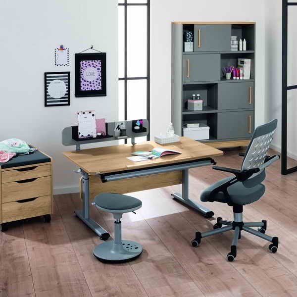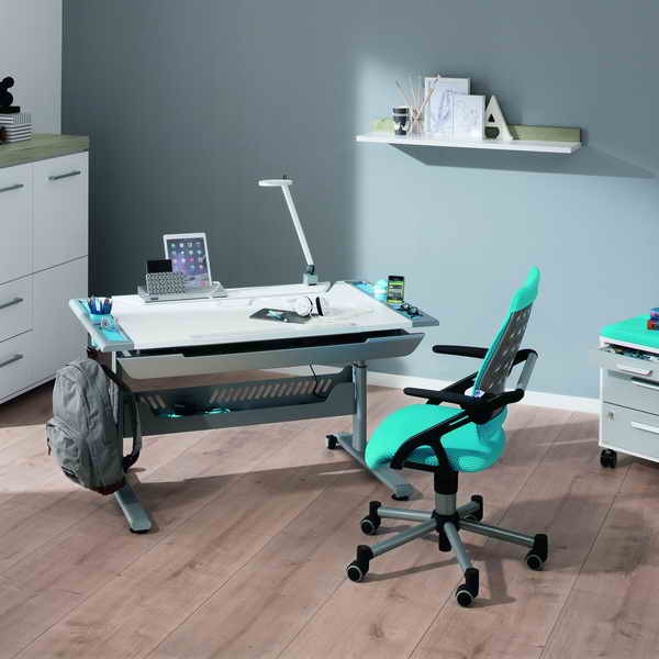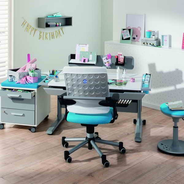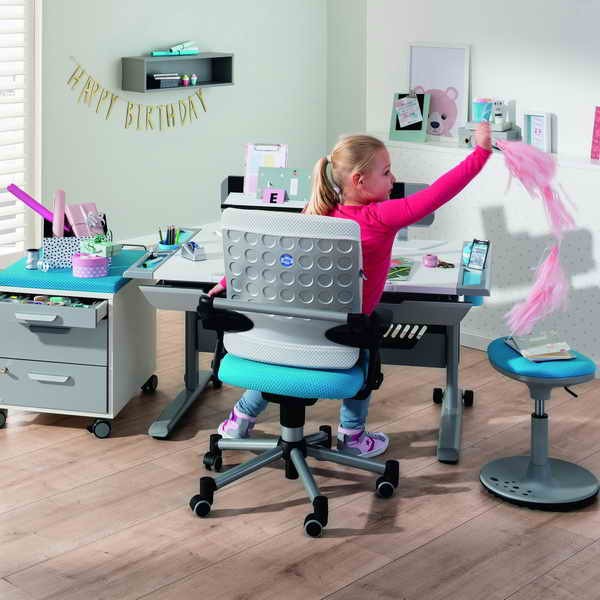 Ергономічний дитячий стілець на роликах TIO Sitness від німецької фабрики PAIDI помітно виділяється із маси звичних для нас дитячих стільців за рахунок наявності підлокітників. Ця яскрава та незвичайна модель з оригінальним дизайном та насиченими забарвленнями у 10-ти кольорових комбінаціях не може залишитися непоміченою. У цій моделі з німецькою педантичністю враховано всі фактори правильного становища сидячи. Висота сидіння плавно регулюється газліфтом, на дитячому стільці з підлокітниками для школярів TIO Sitness зручно розміститься малюк зростом 110 см і хлопець зростом понад 2 метри. Цей дитячий стілець має вигнуту спинку, що повторює анатомічний вигин хребта, таким чином хребет збереже природне правильне положення, що сприяє підвищенню працездатності. За рахунок регулювання висоти спинки-регулюється і глибина сидіння. Передній край сидіння-скошений, за рахунок цього не підтискується підколінний простір і не порушується кровообіг. Німецький стілець для школярів TIO Sitness має п'ятипроменеву основу, що є гарантією від перекидання. Важлива деталь практичності – тканинні чохли легко знімаються і їх можна прати при температурі 30 градусів. Продуманий та лаконічний дизайн дитячого стільця з підлокітниками на коліщатках TIO Sitness ідеально вписується в будь-який інтер'єр, а ретельно опрацьована конструкція та особливості технології виробництва – гарантія багаторічної безпроблемної експлуатації. Не тільки правильно обрана парта, а й правильно обраний стілець допоможе Вашій дитині зберегти здоров'я з дитинства.