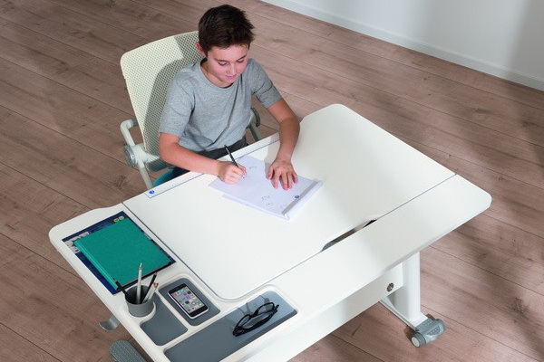 При заняттях слід стежити за кутом нахилу стільниці. Кут нахилу стільниці учнівського столу-трансформера змінюється по висоті, щоб зберегти правильне положення тіла під час читання, письма та малювання.